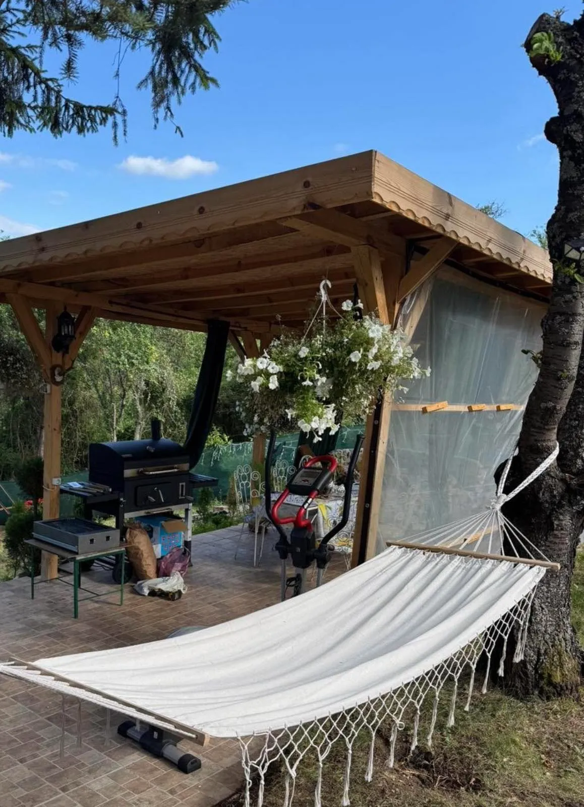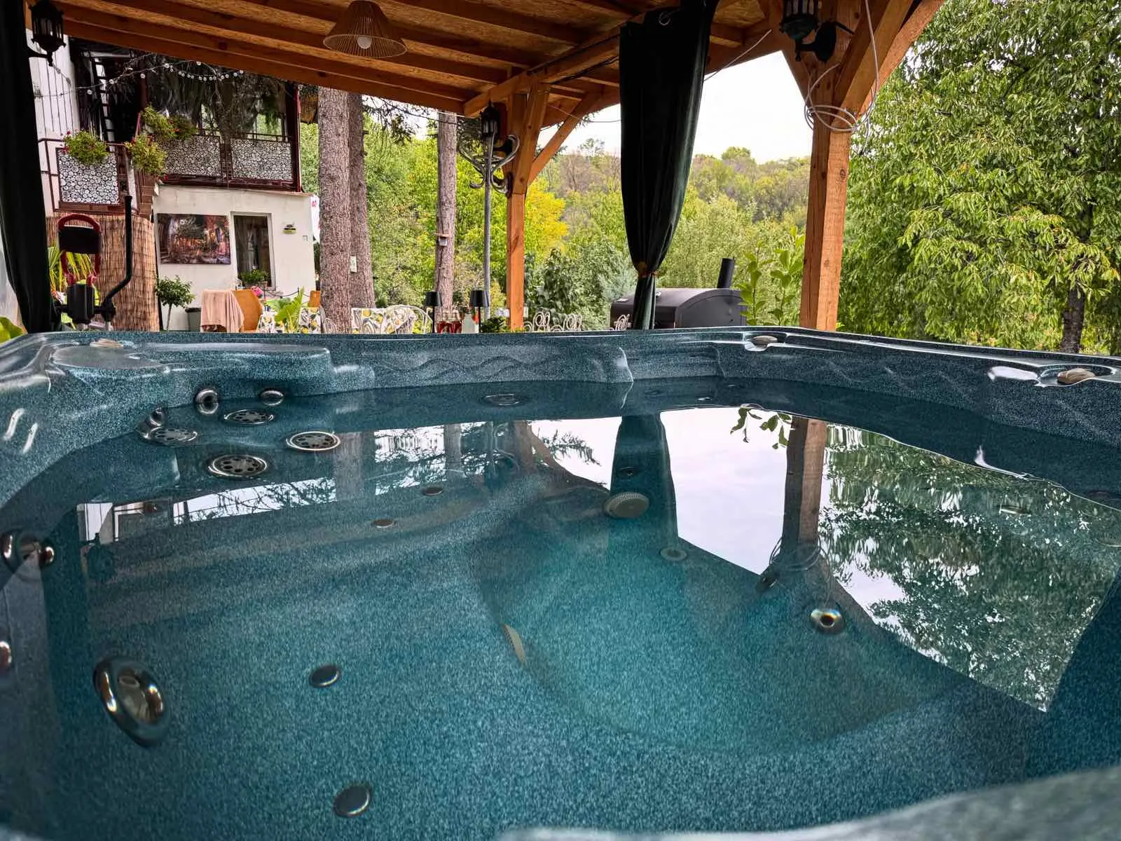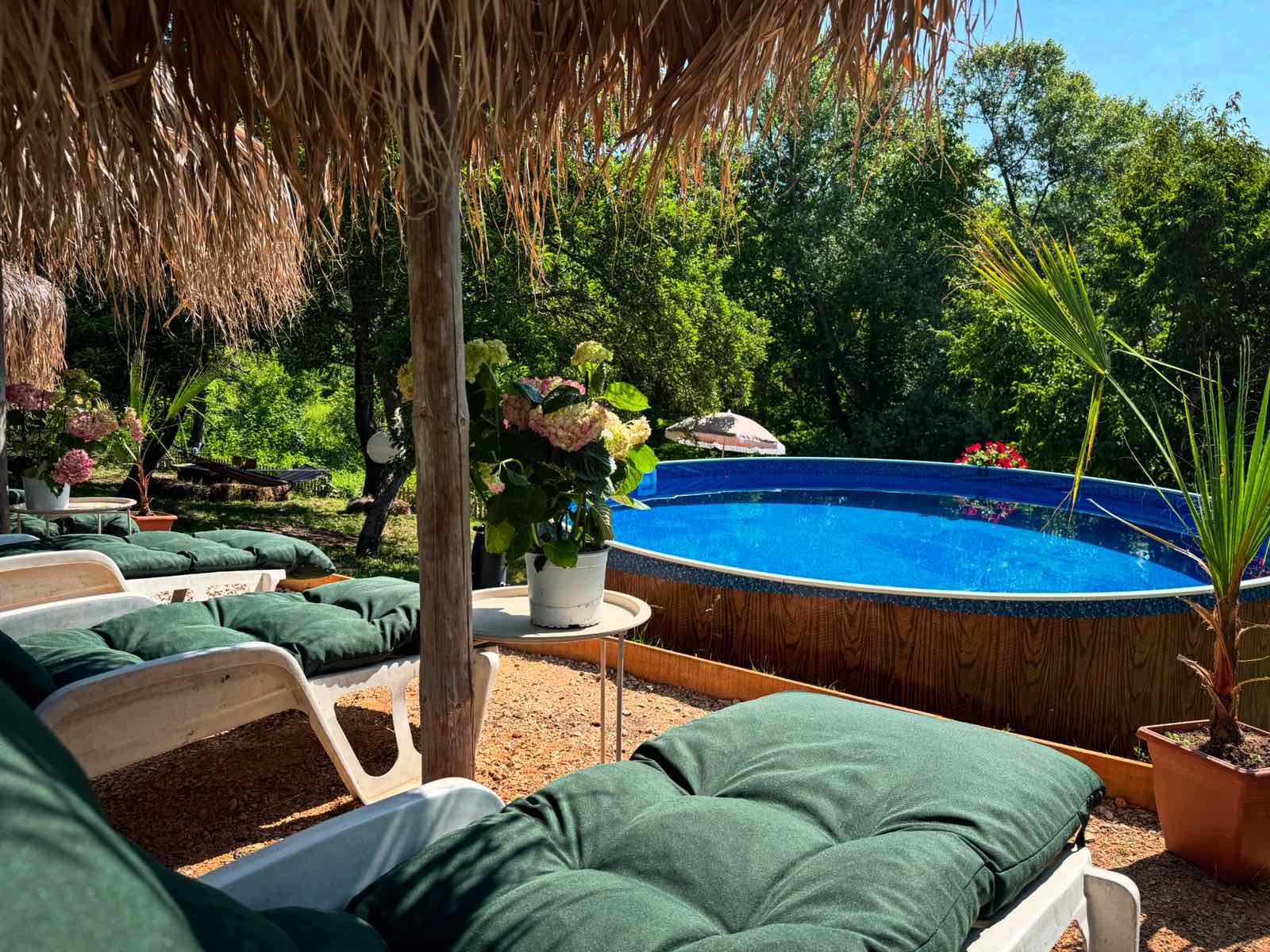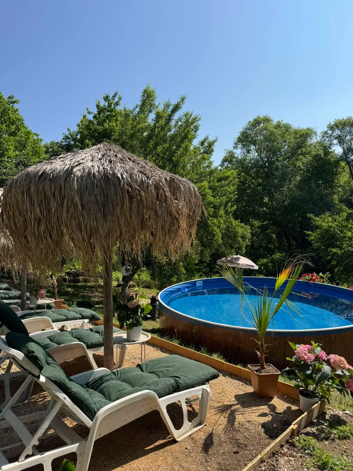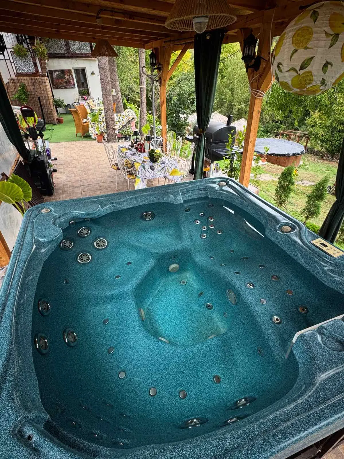 На разположение са озеленен двор, шатра с барбекю, целогодишно джакузи, сезонен басейн, кътове за релакс и детски кът с батут.